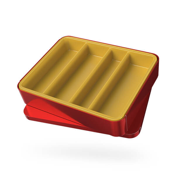 | ابعاد داخلی ظرف چهار شبکه | ( 4/5cm – 3/3cm – 5/5cm – 4/5cm ) × 16/5cm – ارتفاع 3cm |